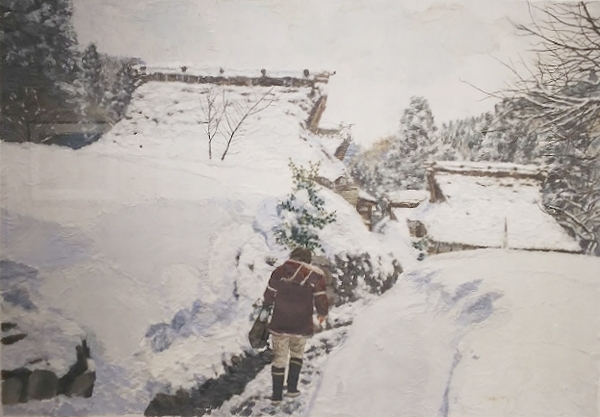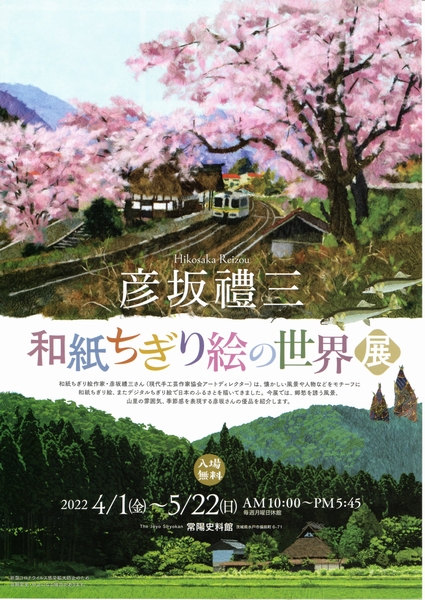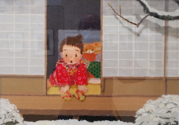 2022-05-04 和紙ちぎり絵の世界展 彦坂禮三 イベント 常陽史料館での「和紙ちぎり絵の世界展:彦坂禮三」に行きました とても良かった、家内ともども感動です 特に、この雪風景。雪の質感が素晴らしい(写真ではよくわかりませんが) 家内のお気に入り、アジサイ 女の子の表情が可愛い、家内は障子の縁のリアルさに感心していました 風景で、枯れ草の質感とリアルさが素晴らしい その枯れ草描写のアップ(実際は立体的に重なり合っています)
